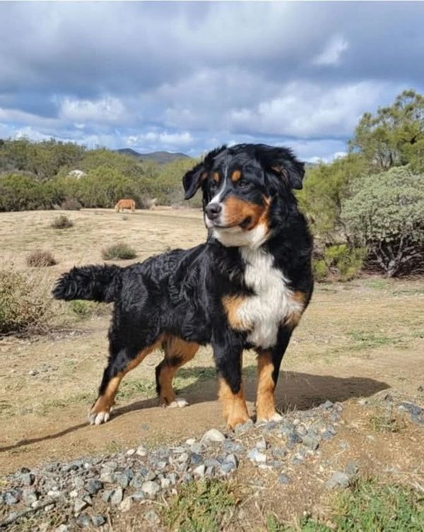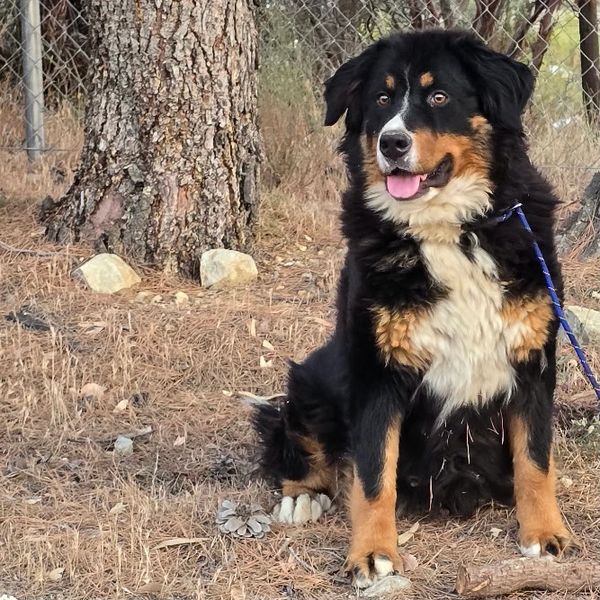 Scully is our Bernese Mountain Dog! She is a working Livestock Guardian and loves her herd of goats and miniature horses. She is a gentle girl who loves to splash in the pool and give bear hugs!